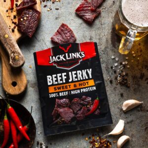 Ingredienti: carne di bovino adulto (origine: UE), destrosio, succo di mela, sale, conservante (nitrito di sodio), miele, antiossidante (ascorbato di sodio), zucchero, proteine vegetali idrolizzate, estratti di spezie, spezie, aromi naturali, zucchero di canna, correttore di acidità (acido citrico), aromi, pepe nero.