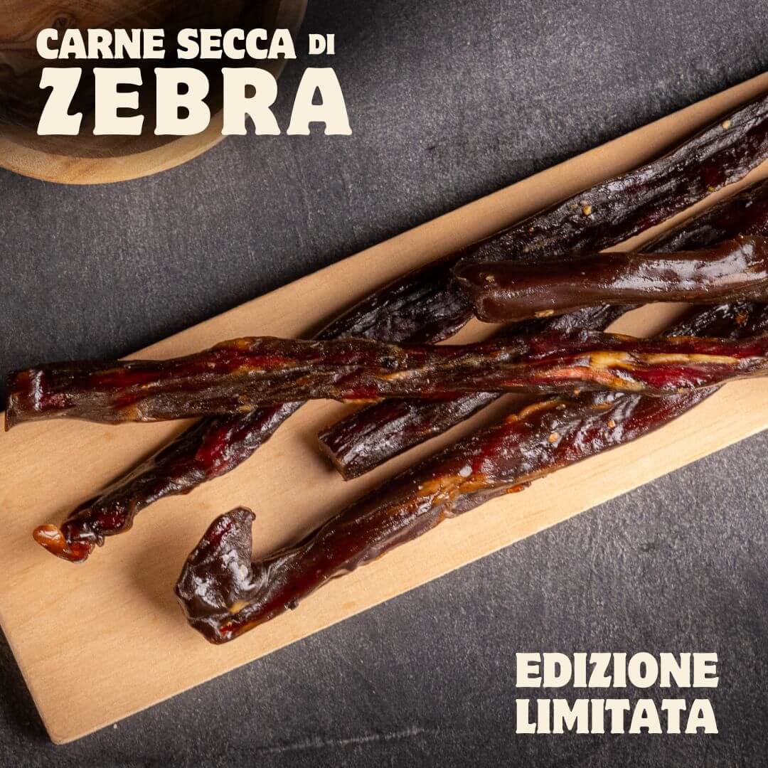 Non è solo carne secca: è un viaggio sensoriale verso territori ancora inesplorati del gusto. La nostra edizione limitata di carne secca di zebra nasce da un’accurata selezione di carne proveniente da allevamenti controllati e sostenibili, dove il benessere animale e la qualità della materia prima sono al centro di ogni fase.